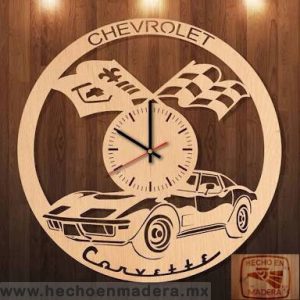 HEM-REL-1436 Reloj Corte Laser Vehiculos Corvette Auto y Nombre 1436